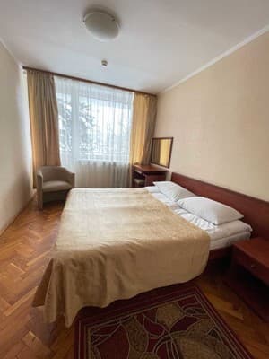 Апартаменты «Гетьман» размещены всего в нескольких километрах от центрального аэропорта. Номерной фонд составляет около 100 апартаментов, среди которых «Эконом», «Люкс» и «Стандарт» по доступной стоимости. В каждой комнате есть вся необходимая мебель, спальные места. Кроме того в гостей есть возможность просмотра кабельного телевидения, на широком экране с большой диагональю. Также есть журнальные столики, доступ к беспроводному интернету. Все отдыхающие могут посетить ресторанный комплекс. Он рассчитан на более чем 150 посадочных мест. По желанию администрация может предложить организацию торжественных событий и праздников. Там же вы можете заказать блюда разных кухонь, вкусно и сытно покушать. Из дополнительных услуг можно выделить самые распространенные: Бар, ресторан, бизнес-центр, оздоровительный комплекс, салон красоты и стоянка для транспортных средств. Комнаты отапливаются, есть холодильники и кондиционеры.