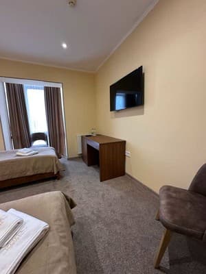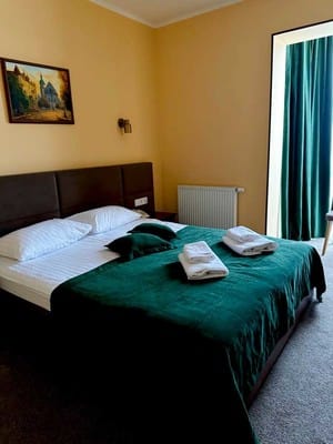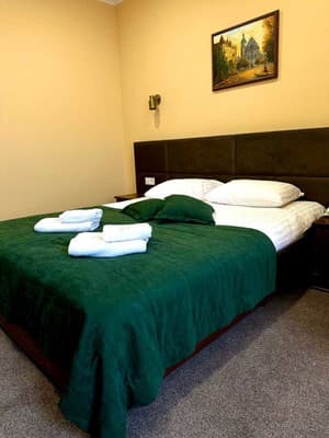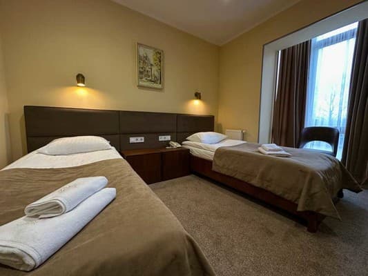 «Копа» - не просто возможность остановиться на ночлег, но и прекрасное здание, которое особенно обворожительно смотрится в вечернее время благодаря яркой подсветке. Удобное расположение позволяет добраться от нее к центру Львова всего за 15 минут. Выполненный в современном стиле в соответствии с европейскими стандартами, отель приглашает гостей в номера на любой вкус и кошелек. Здесь можно остановиться в одном из 40 уютных номеров, среди которых могут быть варианты «Стандарт», «Эконом», «Люкс», «Супериор», а также шесть коттеджей, выполненных в классическом стиле. Все номера оснащены необходимыми для комфортного отдыха вещами, среди которых важное место занимает кондиционер. Все гости отеля могут воспользоваться Wi- Fi, не выходя из номера. Обитатели отеля могут прогуляться по территории с беседками и изысканными фонтанами, а также посетить римскую баню или сауну с бассейном. В прилегающем к отелю ресторане подаются сытные и вкусные блюда украинской и европейской кухни. Здесь также можно полакомиться барбекю, если вы являетесь любителем жареного мяса. По утрам за отдельную стоимость каждый постоялец может заказать себе завтрак. В отеле круглосуточно функционирует лобби-бар, поэтому можно всегда воспользоваться его услугами. Возле гостиницы предлагается совершенно бесплатная парковка. Важный момент: если вы путешествуете с животными, то есть возможность остановиться в отеле с ними, однако только в одном из коттеджей.