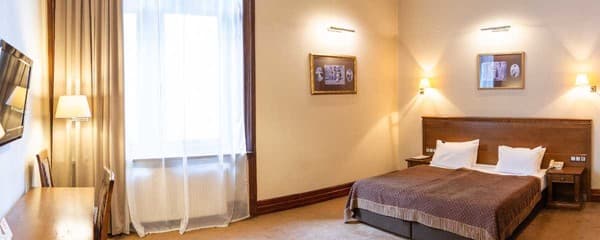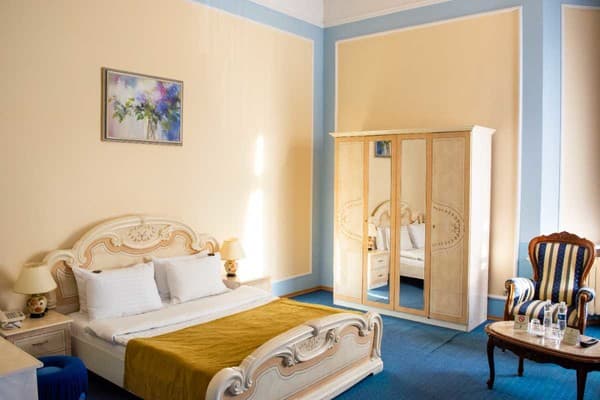 Гостиница Жорж находится центре города по адресу пл. Мицкевича, 1, а именно в сердце деловой и богатой жизни. Окна выходят на монумент знаменитого польского поэта Адама Мицкевича и на площадь, где расположены памятники архитектуры и истории. Это один из самых древних отелей. Относиться к ряду архитектурных памятников. Общее количество номеров в отеле 84 с различным уровнем комфортности. Комнаты оснащены всем необходимым для приятного времяпровождения: доступный WI-FI и периодический сервис номеров. Гостиница имеет современный конференц-зал для проведения важных переговоров. В отеле предоставляются услуги бара, бизнес-центра, развлекательных и спортивных мероприятий, а также трансфера в аэропорт и обратно. На территории гостиницы находится прачечная и ресторан. Разрешено держать в номере животных. Детям до шести лет проживание не оплачивается, но притом отдельного места для них не предусматривается. В ресторанном меню можно найти интересные блюда как украинской, так и европейской кухни.